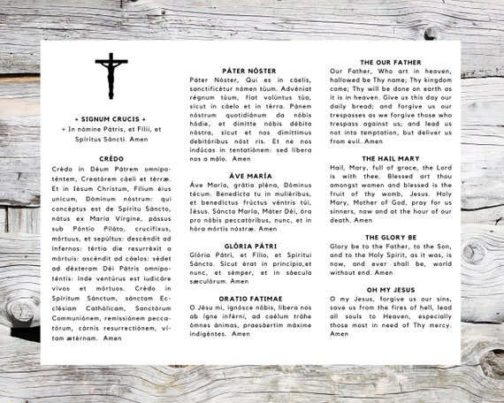 Holy Prayers In Latin And English Sign Of The Cross Our Etsy Canada